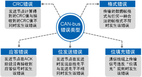 盡管CAN通訊的可靠性很高,但是依然可能出現(xiàn)錯誤。錯誤類型有一下五種。
