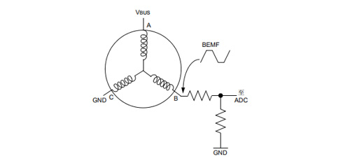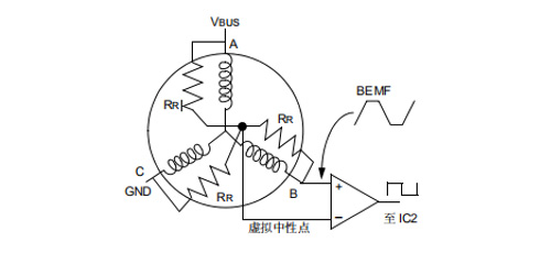 BEMF電壓與直流母線電壓的一半進(jìn)行比較該方法是在假定BEMF電壓等VDC/2時發(fā)生過零事件的情況下,利用比較器將 BEMF 電壓與直流母線電壓的一半(VBUS/2)進(jìn)行比較。圖下圖顯示了實現(xiàn)該方法所用的電路。